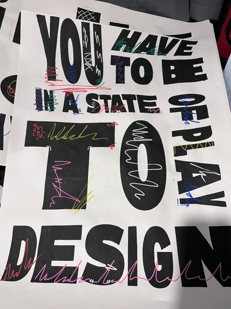 This week, I have been working on a screen print for a local zine fair that I have invited my students at college to attend and sell their work. I saw this as an amazing opportunity for me to have a go at being more hands on creative. The quote is from the Netflix series ‘Abstract’ In which Paula Scher talks about how you need to be able to have fun and be prepared to play around with design in order to make interesting designs. This was an amazing opportunity for me to experiment and get out of my comfort zone with physical design and print processes that I have not done in such a long time.