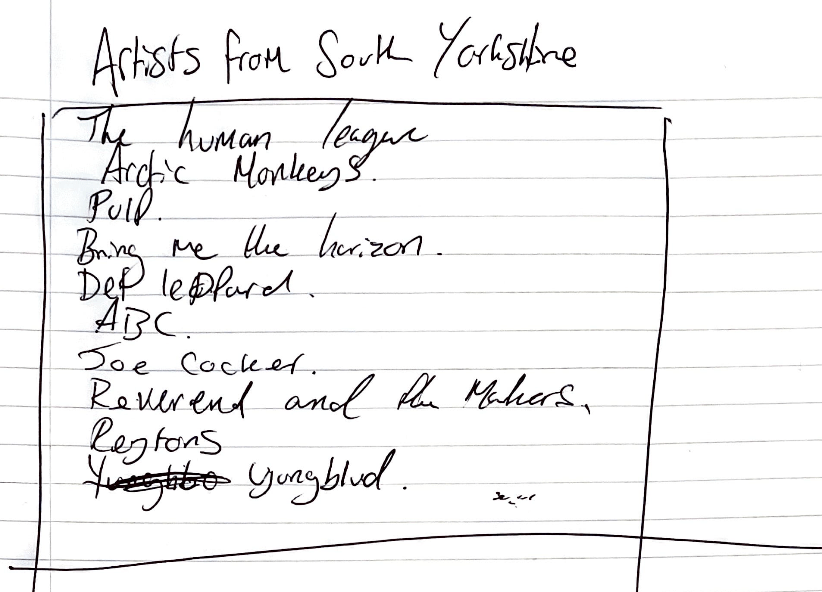 The problem I have is that there are not many well known artists that come from Barnsley. I certainly can’t name one. But there are a very wide range of artists that I know of and listen to from the wider range of South Yorkshire. For people that don’t know. South Yorkshire is made of Barnsley, Sheffield, Rotherham and Doncaster. These four districts are home to 1,374,182 people. and has produced some amazing work from bands such as Def Leppard (Sheffield), Arctic Monkeys (Stocksbridge), Pulp (Sheffield), Yungblud (Doncaster) and so many more.